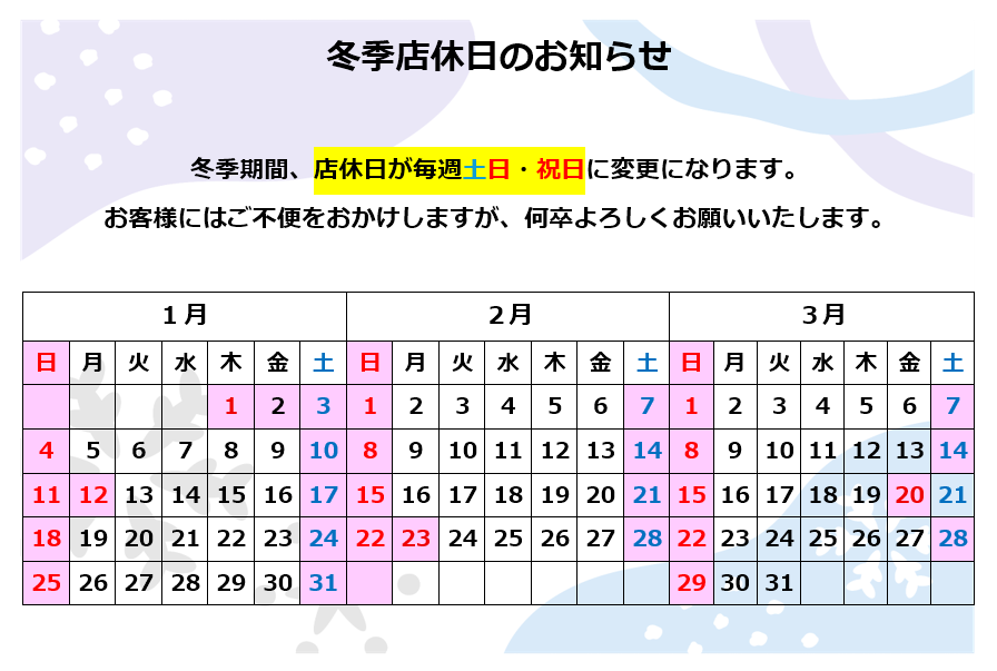 ★★定休日★★ 土曜、日曜・祝日 |